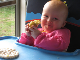 Adele is loving it! She has a ball with her food. Not a lot actually gets eaten but she is being exposed to so many different flavours and textures.